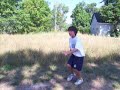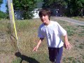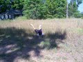 Description: Luc in cabin 21 doing a flip into the grass. What a crazy kid! :P |